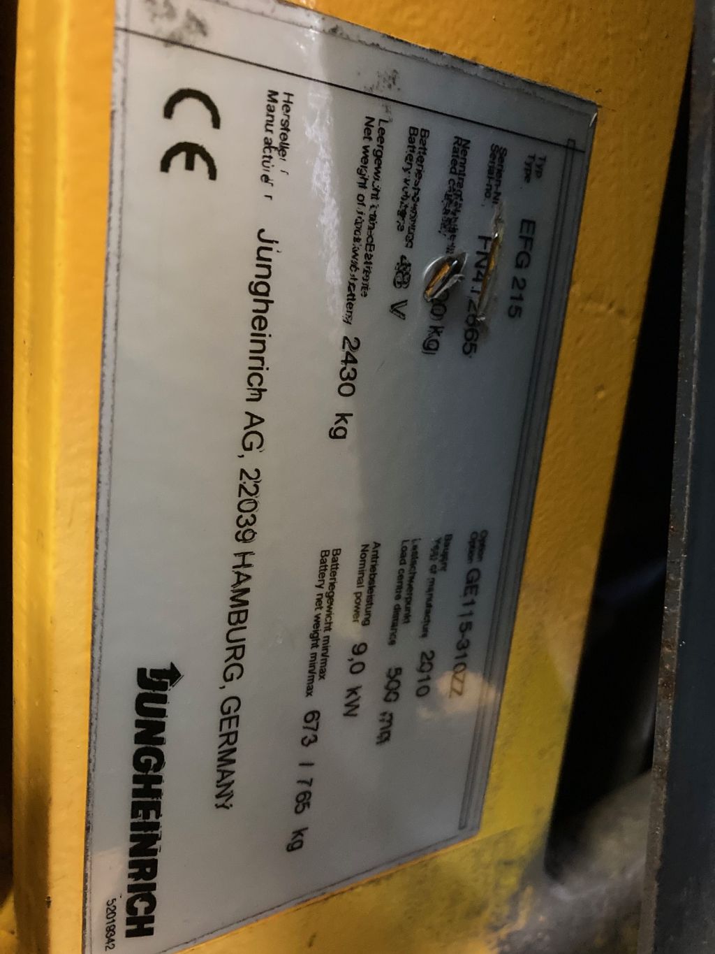 | Machine | Jungheinrich EFG 215 elektrische heftruck |