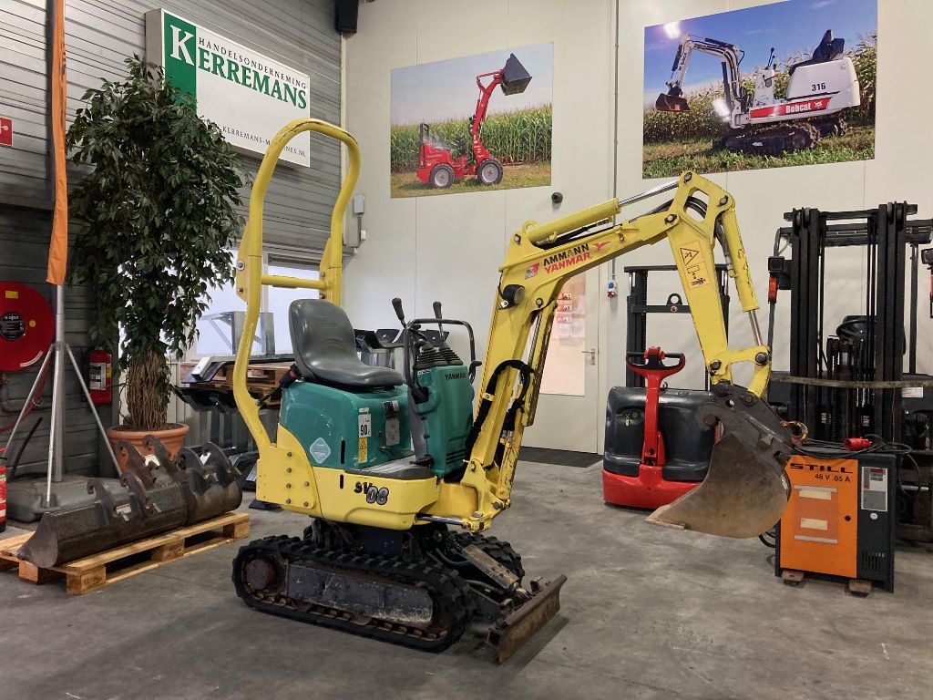 | Omschrijving | YANMAR SV08 Minigraver compleet met 4 graafbakken -Bouwjaar: 2010 -Draaiuren: 2893